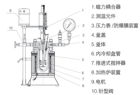 GSH型系列高壓釜采用環(huán)形稀土永磁耦合驅(qū)動器,攪拌力矩大,具有靜密封、無泄漏的特點。釜體材料主要采用1Cr18Ni9Ti 不銹鋼,并可根據(jù)不同介質(zhì)要求制作鈦材(TA2)、聚四氟乙烯襯套及襯鎳(Ni6)。攪拌軸承采用自潤滑耐磨軸套,適合于各種介質(zhì)的攪拌。出料方式有上出料和下出料兩種,供用戶訂貨時選用。該系列產(chǎn)品具有運轉(zhuǎn)平穩(wěn)、噪音小、操作方便等特點,是實驗室進行各種化學(xué)反應(yīng)的理想裝置。